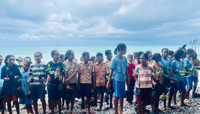 Oepoli,bhayangkarapos.com – Satgas Pamtas RI-RDTL Sektor Barat Yonarhanud 2 Kostrad Pos Oepoli Pantai, Tengah dan Sungai memberikan bentuk kepedulian terhadap lingkungan dengan menanam 2000 pohon mangrove bersama elemen masyarakat untuk ditanam di pinggir pantau Oepoli, Kec. Amfoang Timur, Kab. Kupang. Senin (9/03/2026).