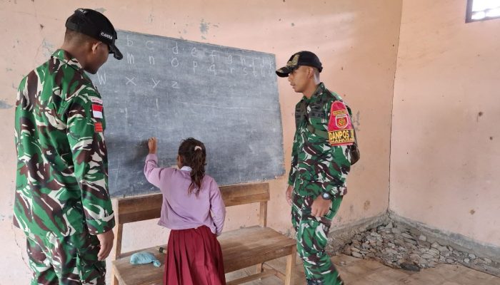 Manusasi,bhayangkarapos.com – Satgas Pamtas RI–RDTL Sektor Barat Yonarhanud 2 Kostrad Pos Manusasi melaksanakan kegiatan tenaga pendidik (Gadik) di SDK Manusasi, Desa Manusasi, Kecamatan Miomaffo Barat, Kabupaten Timor Tengah Utara (TTU), Senin (9/3/2026).