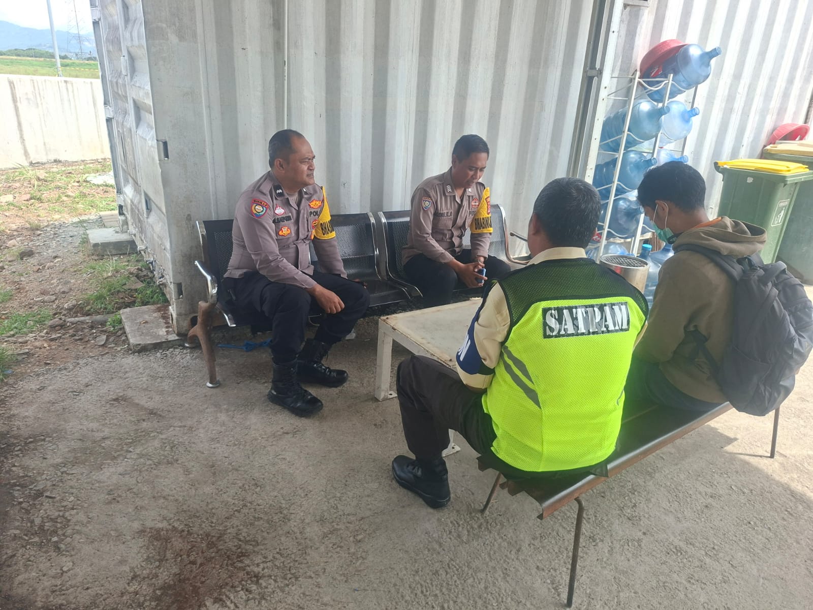 Pada kesempatan patroli kali ini Anggota bhabinkamtibmas Polsek Kramatwatu Polresta Serkot Polda Banten bertemu dengan satpam perusahaan membahas perihal keamanan di wilayah perusahaan.