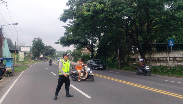 Seperti halnya anggota lalu lintas Polsek Kramatwatu Polresta Serkot Polda Banten melaksanakan pengaturan di depan SDN 1 pejaten Desa pejaten Kec.Kramatwatu,senin (6/4/2026).