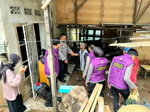 Kegiatan ini dipimpin oleh Kabag Psikologi Polda Lampung AKBP Endang Mustikawati beserta tim, yang turun langsung ke lokasi terdampak pasca banjir yang melanda pada Selasa malam.