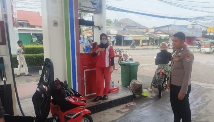 Anggota Polsek Cipocok Jaya Polresta Serkot Patroli Sambang Dengan Karyawan SPBU Serta Sampaikan Pesan Kamtibmas